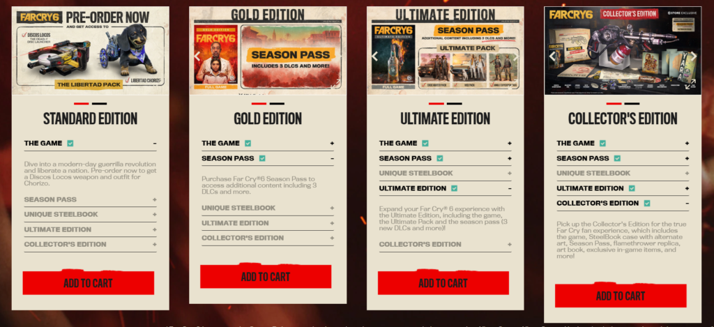 The standard edition will run $59.99 whereas the gold edition will be $99.99. For a few dollars more, the Ultimate Edition may be the most bang for your buck at $119.99. If you’re looking for a piece of Far Cry 6 to hold, then the collector’s edition is the way to go as it will include a replica (sorry) flamethrower and will cost a hefty $199.99.