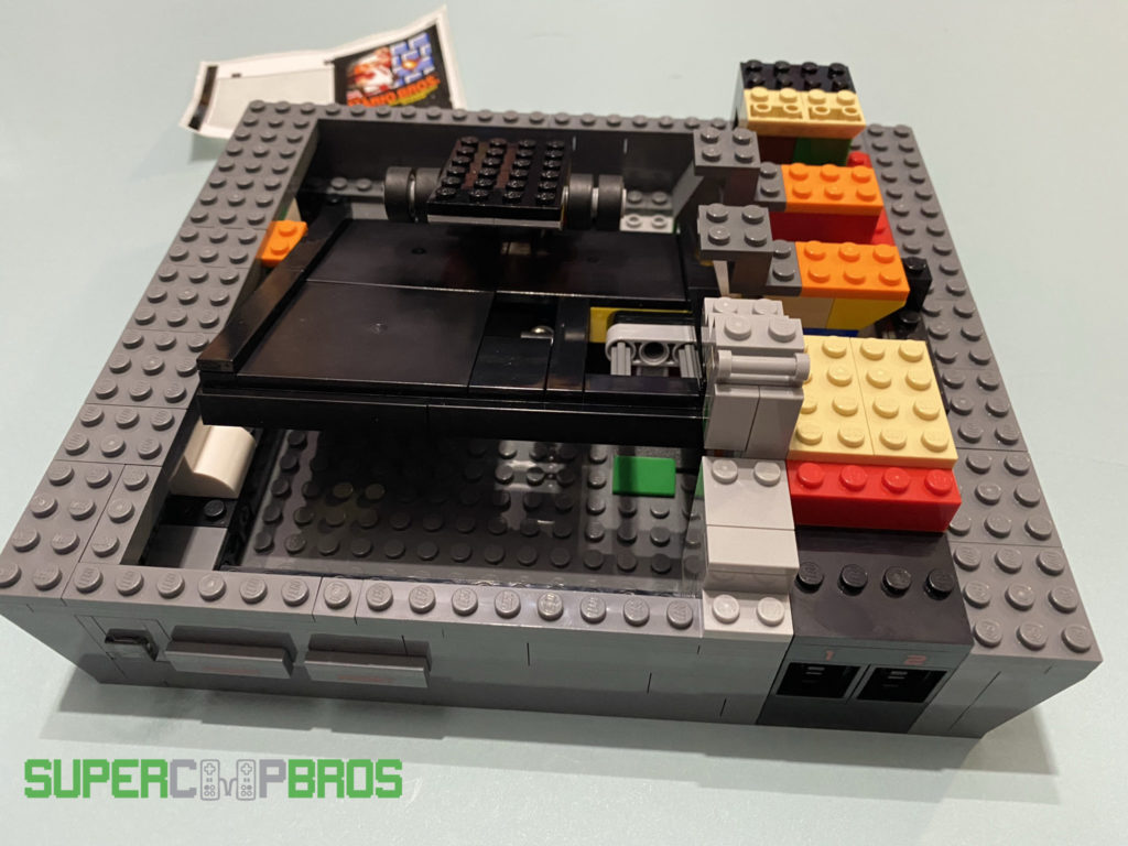 Despite the TV being an incredible build, the NES is the real “Main Event” and is what we’ve all been waiting for. From the initial launch video, I knew that the cartridge loading system would be complex, but didn’t expect the entire NES build to be. The cartridge loading system emulates the loading system 100% like its original namesake. Whoever thought of this mechanism to do this using LEGO bricks is an absolute genius. Of course, this would go to waste if the LEGO Nintendo didn’t come with a game which of course is made of LEGO bricks. The rest of the build as I mentioned is complex and again utilizes techniques to ensure a very sturdy build. I wouldn’t try this, but I wouldn’t be surprised that this console could survive a fall to the floor. It’s incredibly solid and heavy.